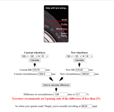 Tyre upsizing is a popular upgrade among car owners who want better handling, more road grip and a sportier look. Upsizing means changing from the stock tyre size to a wider tyre or larger rim while maintaining the correct rolling radius. The key rule in tyre upsize is keeping the new circumference within ±2% of the original size. Exceeding this limit causes problems such as ABS malfunction, inaccurate speedometer reading, poor mileage and suspension stress. A tyre upsize calculator helps compare rolling radius, tyre width, rim size and percentage difference to ensure the new size is safe. Wider tyres increase vehicle stability, cornering control and braking performance, especially on highways and wet roads. Vehicles with larger tyres also look more aggressive, fill the wheel arches better and feel more planted at high speeds. However, incorrect upsizing can cause rubbing issues, reduced ride comfort and faster shoulder wear. Drivers choosing a +1 or +2 upgrade need to reduce sidewall height to match the rolling diameter. For example, shifting from 185/65 R15 to 195/55 R16 is a safe upsize because the difference remains within tolerance and maintains correct wheel geometry. Tyre upsizing supports stronger road grip for SUVs, sedans and hatchbacks, making cars like Creta, Baleno, Innova and Thar feel more confident. Before purchasing, drivers must check load rating, speed index, rim width and offset to avoid vibration and steering imbalance. When done professionally at a tyre shop, upsizing improves handling, braking bite and cornering grip without harming mileage or safety. In simple terms, tyre upsizing is the easiest way to enhance tyre performance and vehicle stance, provided the diameter change stays within the 2% guideline.